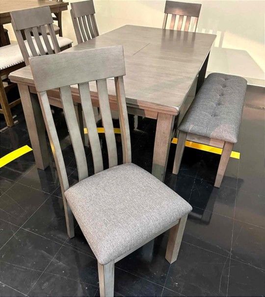 Hallanden Gray Dining Room Set ( Table, Chairs, Bench) /P