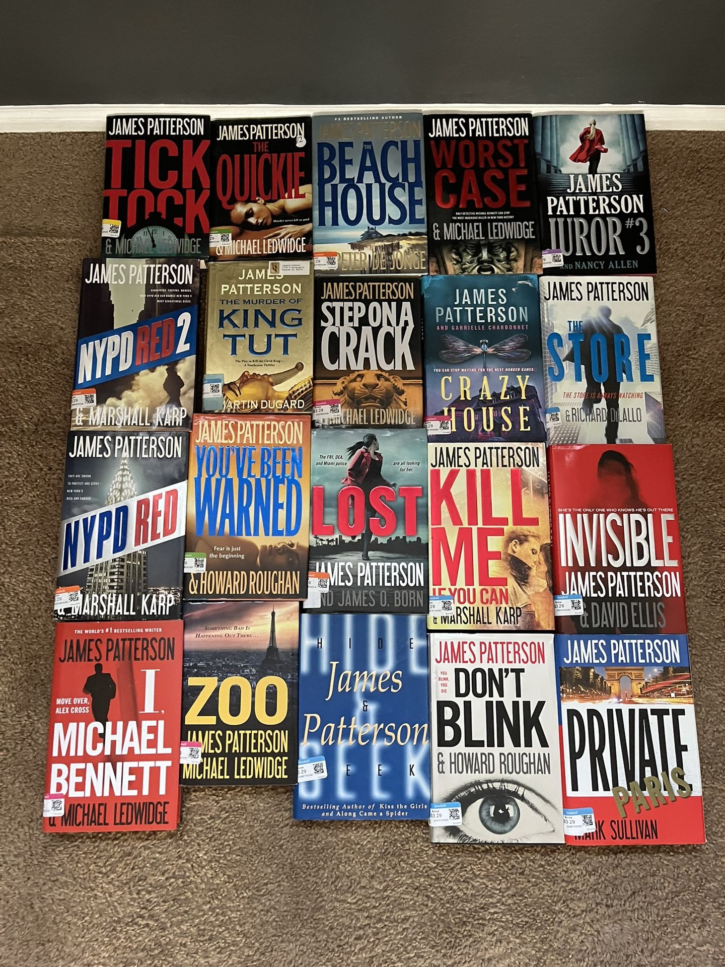 James Patterson hardback books. All are in good condition and all have dust jackets. $40 for all local pickup in surprise at cotton and Waddell