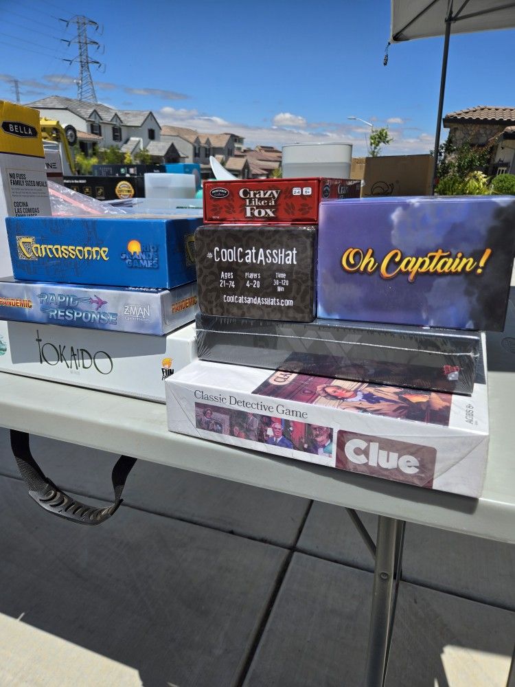 Multiple board games for sale, some new with packaging. Message for prices