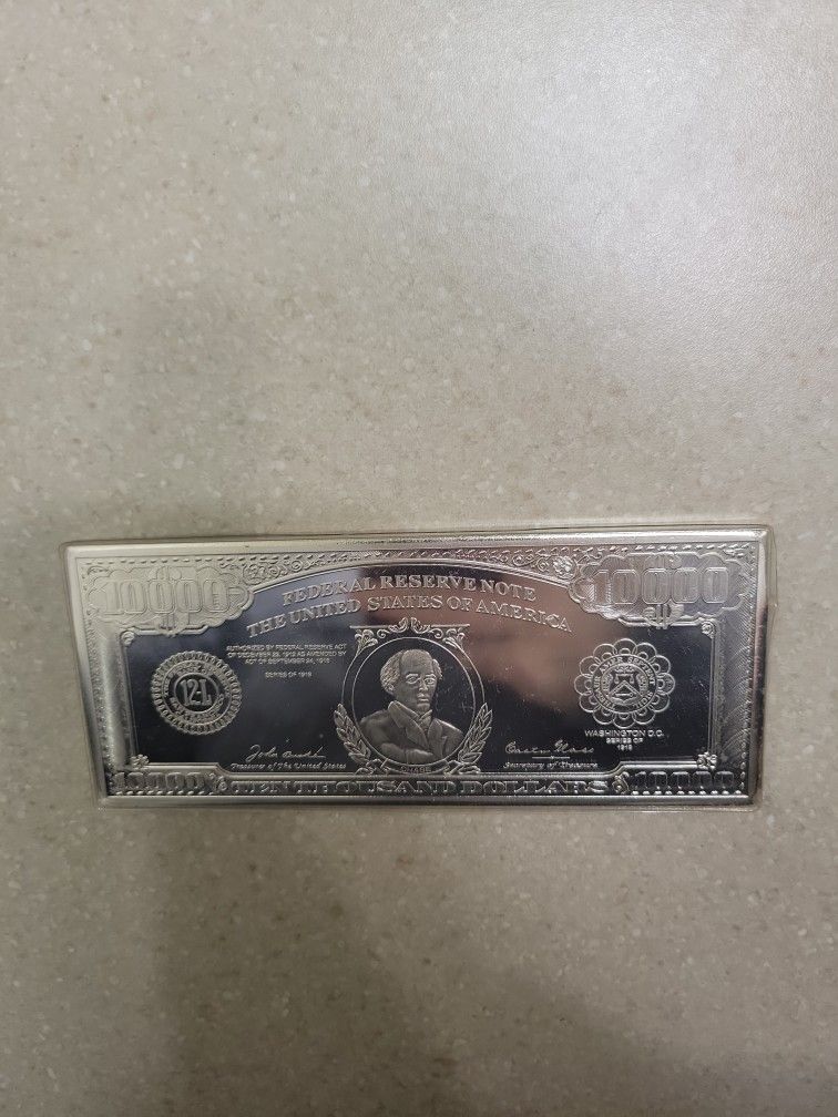 1918 series $10,000 Denomination 12 Oz 999 Silver bar. Very Rare