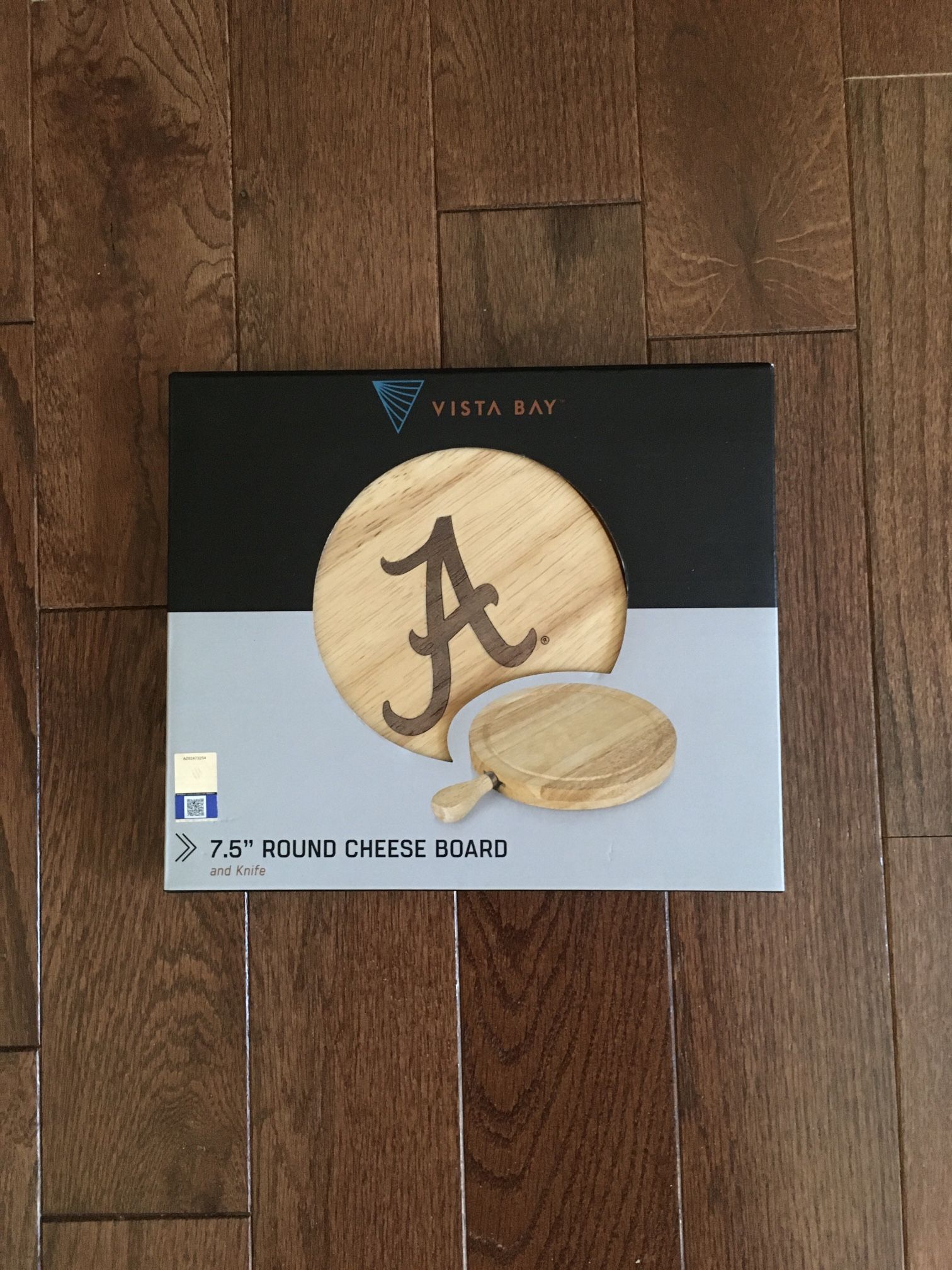 New cheeseboard with University of Alabama A on the front. Include magnetic insert for included knife. Licensed product. $20 cash.