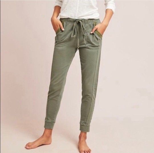 Anthropologie Saturday Sunday Sage Green Jogger Sweatpants. Two front pockets and tow back pockets, drawstring waist. 55% Cotton, 45% Polyester Women's Size S Approx. Measurements 15" Waist 28" Inseam Condition: Preowned in good condition!
