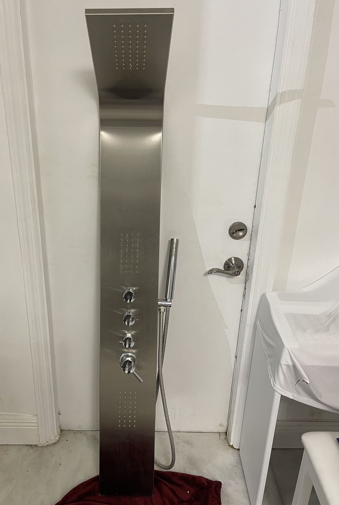 STAINLESS STEEL SHOWER PANEL TOWER • USED ONLY FOR A FEW MONTHS • AMAZING QUALITY // HEAVY PIECE • ORIGINAL PRICE WAS $400 + TAX • THE PART IN THE MIDDLE (WHERE YOU SET UP THE TEMPERATURE HOT/COLD) IS LEAKING • I AM SELLING IT JUST BECAUSE THEY SENT ME A NEW ONE, OTHERWISE WE LOVED IT • MATERIAL: STAINLESS STEEL • 3in1: WATERFALL / MASSAGE / HANDHELD SHOWER FUNCTIONS EASILY REPAIRABLE // PERFECT FOR SOME HANDYMAN WHO KNOWS ABOUT IT *COME PICK IT UP TODAY*