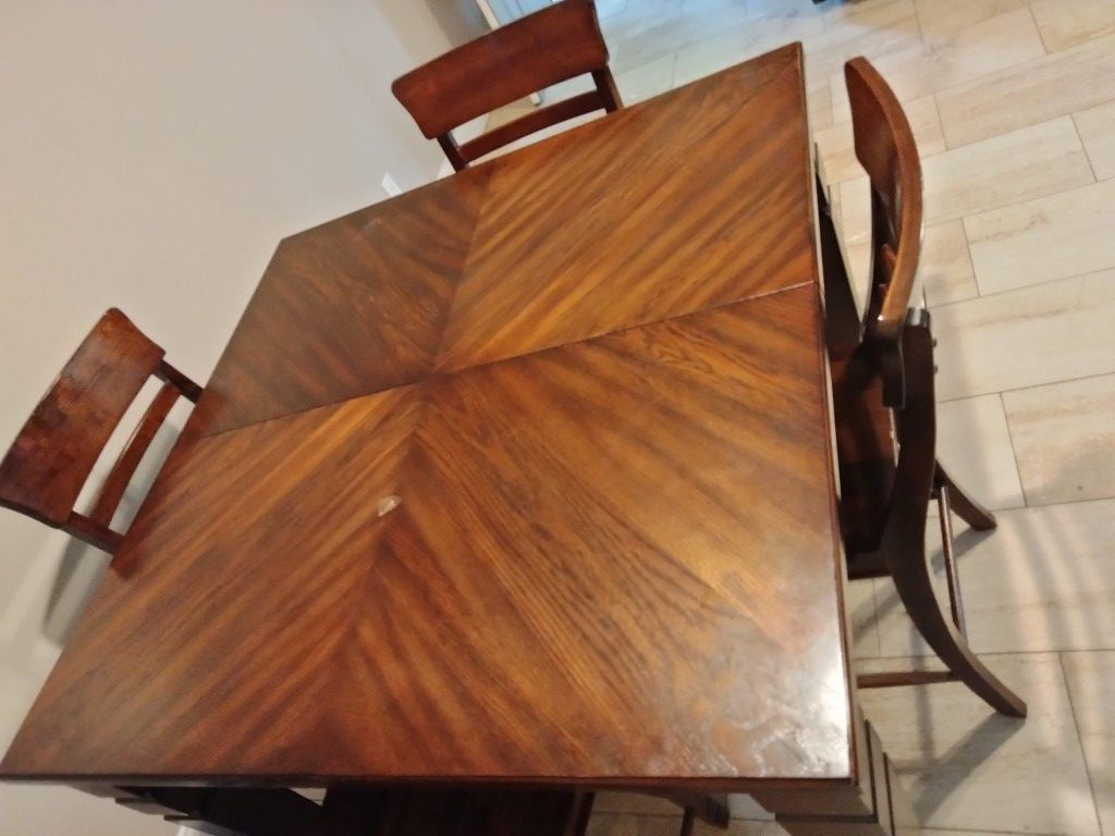 As pictured, amazing condition. Dark wooden dining table with 4 chairs also in great condition. $320 for table and all chairs. Message me if you are interested in buying.