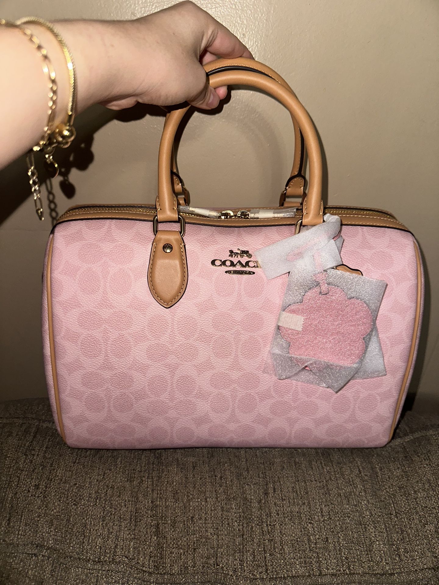New with tags. Coach powder pink large rowan. Selling for 400