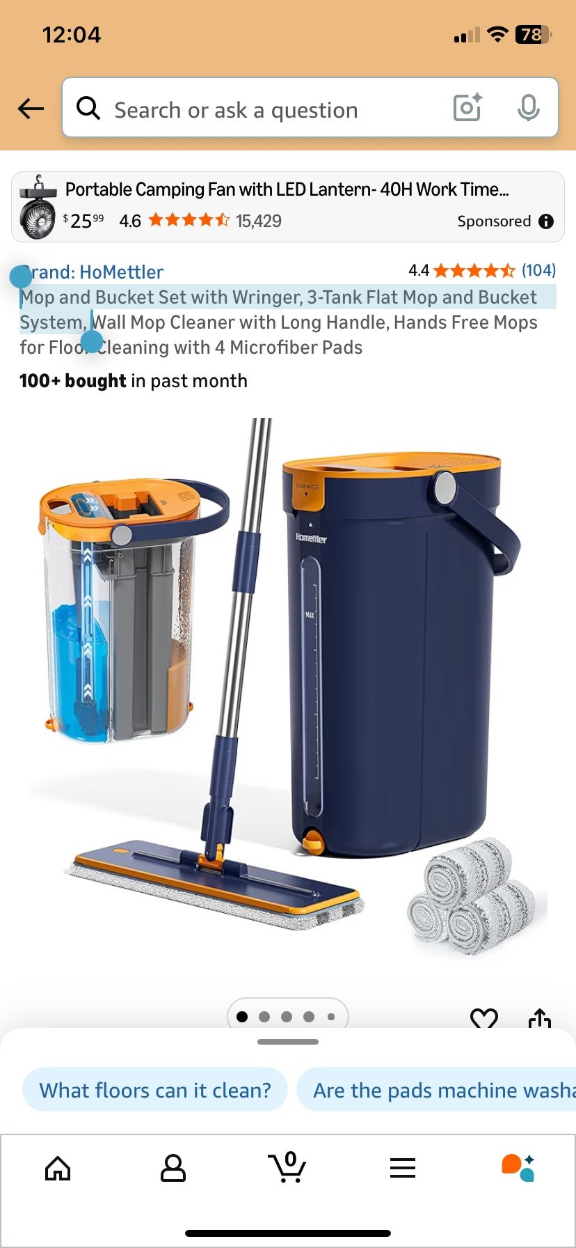 Mop and Bucket Set with Wringer, 3-Tank Flat Mop and Bucket