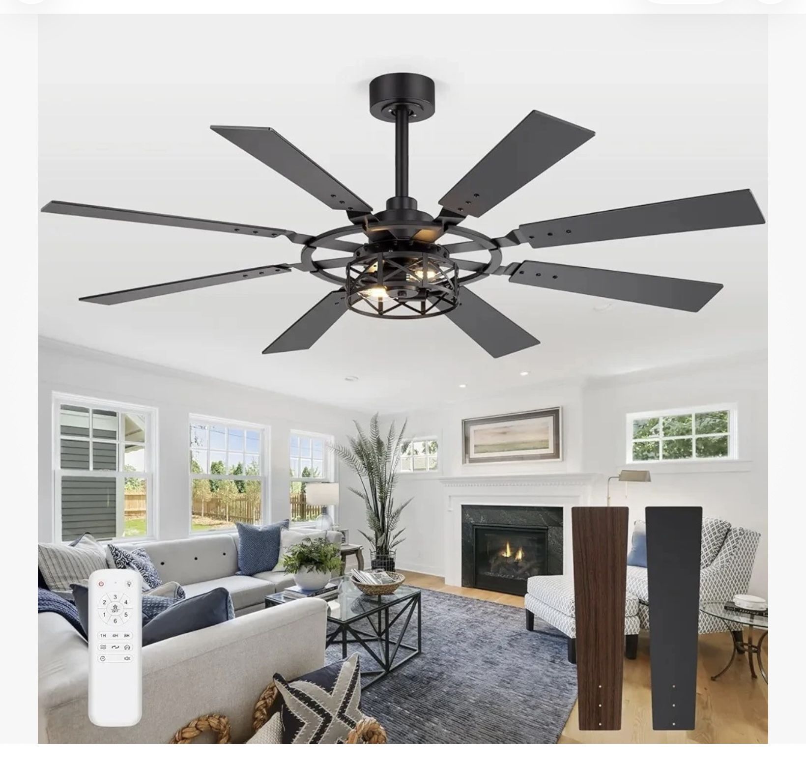 New Breezary - 52'' Indoor Ceiling Fan with Light and Remote , 8 Reversible Blades, Timer, 6-Speed DC Motor, 4″& 8″ Downrod - Matte Black