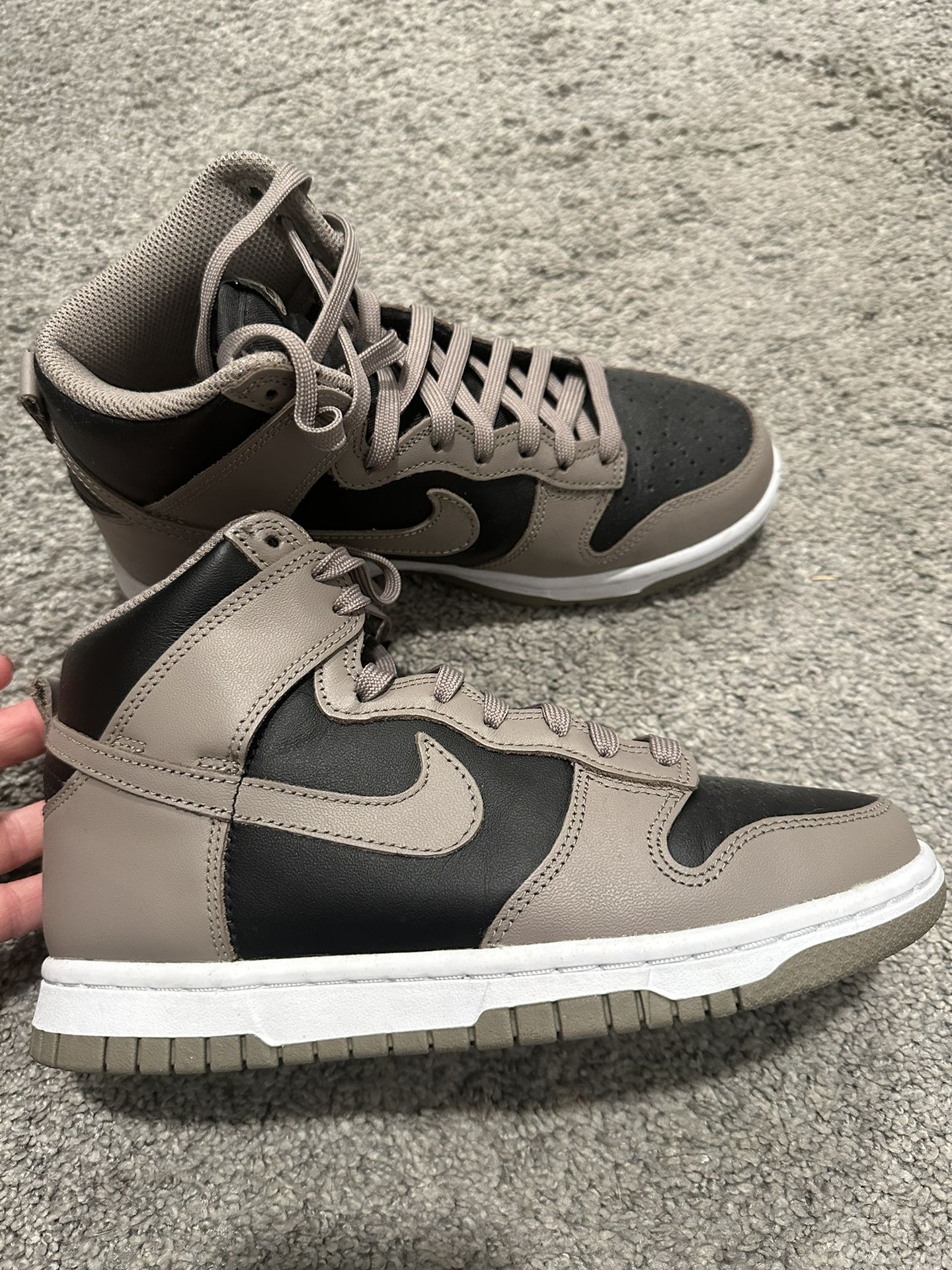 The Nike women’s Dunk High ‘Moon Fossil’ presents a neutral two-tone colorway of the vintage silhouette shoe that made its debut in 1985 as a college hoops shoe. The all-leather upper, rendered in classic color blocking reminiscent of the original ‘Be True to Your School’ series, features a solid black base with contrasting Moon Fossil overlays. Released December 2021