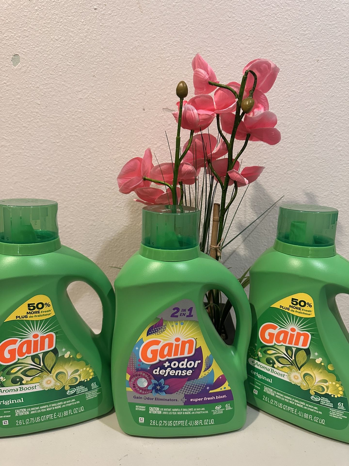 Gain Liquid Laundry Detergent, Original Scent, 88 fl oz, 61 Loads Gain Odor Defense Liquid Laundry Detergent, Super Fresh Blast Scent, 88 fl oz, 61 Loads $10ea Pickup only by white rd