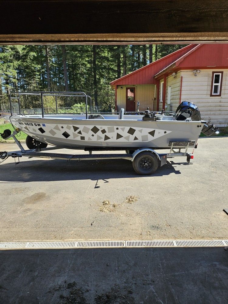 18 hr on mercury outboard 23 on mercury trolling motor Live well Garmin echomap All coast guard required equipment comes with boat Columbia river anchor system Down riggers Pole holders Custom railing 4 brand new boat seats Lot more . Selling to buy 20ft boat for ocean runs Comes with all the poles and gear needed for sturgeon, walley , salmon, steelhead Well over 2000 worth of gear
