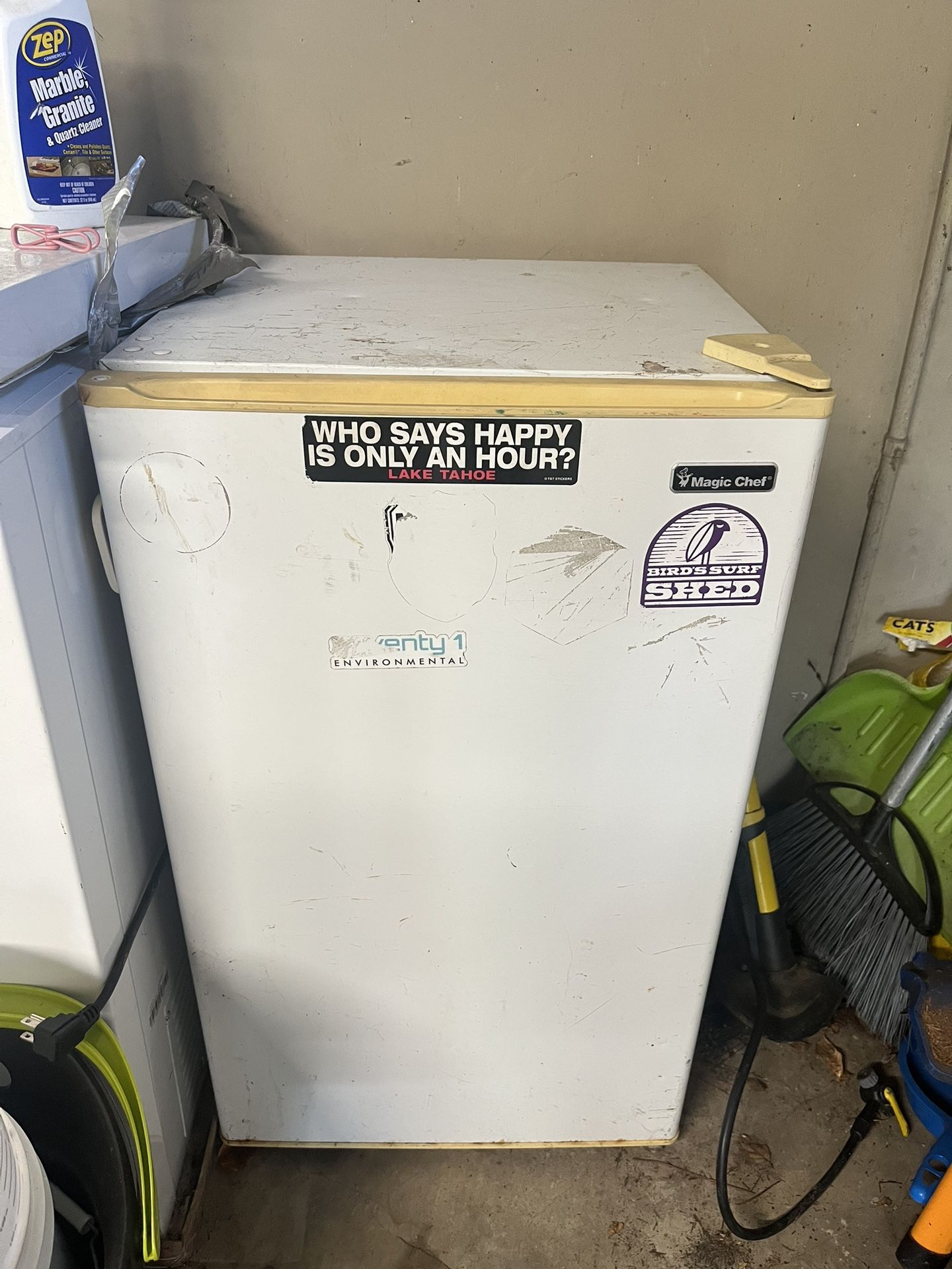 Used mini fridge and mini-er freezer. Not the prettiest on the outside, (this is exactly how I purchased it from offer up) but fridge works great. Door closes/seals, no leaks, keeps stuff cold. I wiped it down but it could use a deeper cleaning g, hence the price. I tried using the measuring app on iPhone, hopefully it’s close. I used it in the garage for overflow. I do not live at the address it’s at anymore so if you’re interested in checking it out, let me know and I will turn it on for you. NEED GONE ASAP