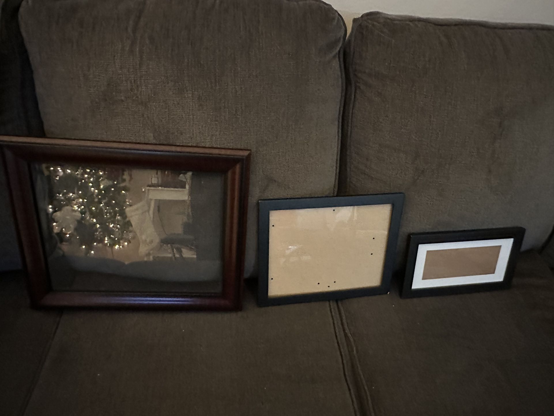 Misc photo frames available $10 each except grey frame with slight damage on corner for $5