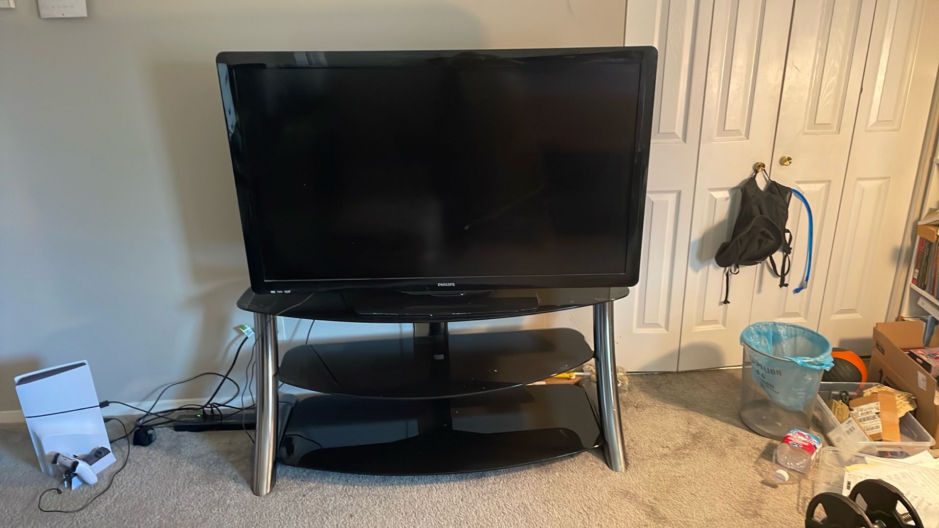 Philips 55” with black glass tv stand both well well under retail. Looking to move soon. Glass stand alone is over 200$ -Tv RARLY RARELY cuts off then cuts itself back on, it may be my fire stick which acts up. Never tried it with another source. Other than that perfect TV deal. If you need it delivered 40$ for gas ⛽️