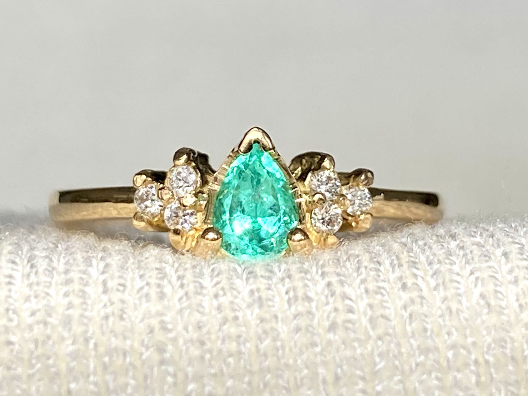 Size 6.5 Genuine Colombian emerald 0.55 carats and 6 diamonds VS1, ring , Gold 18k