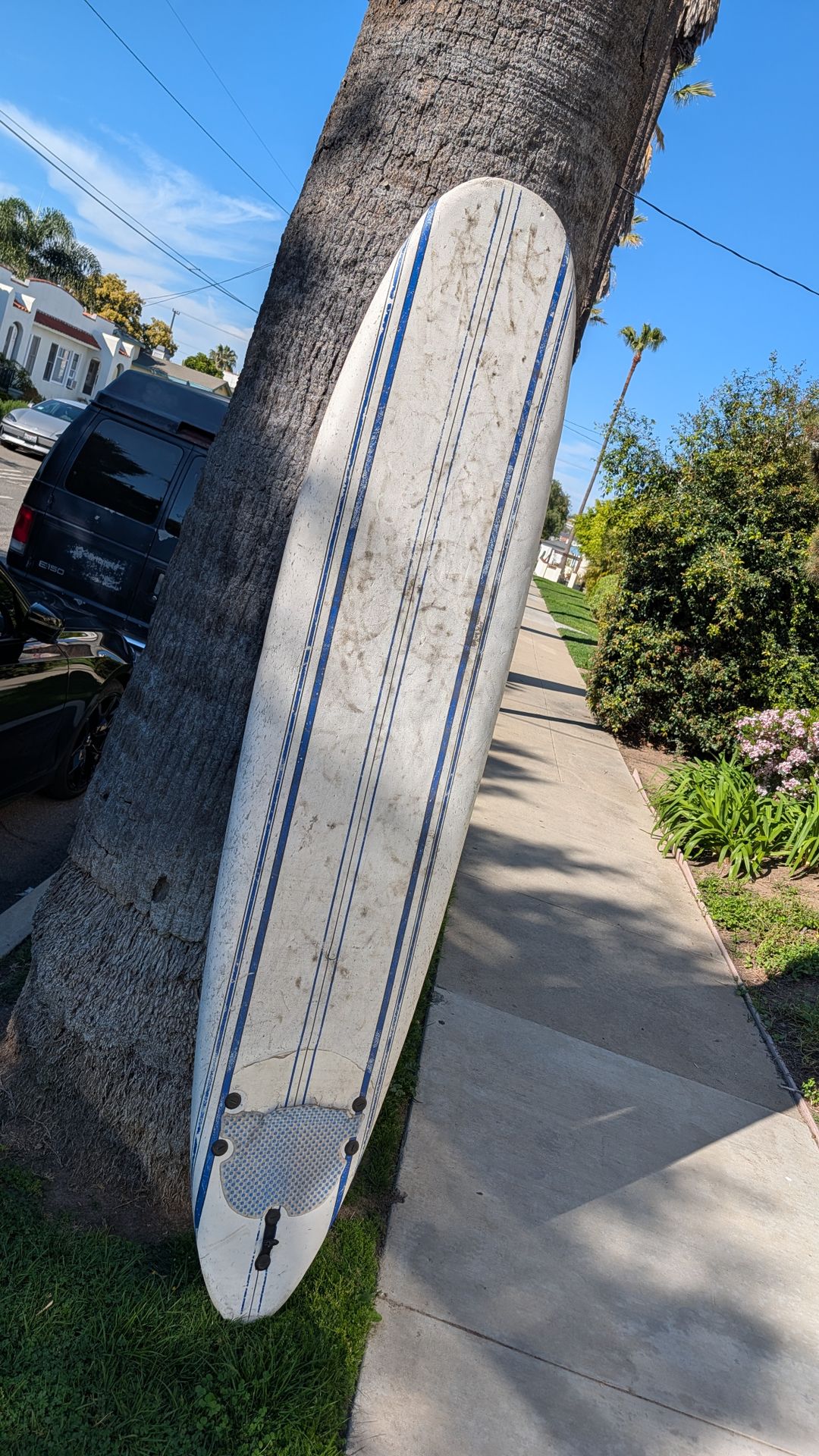 Works. Fins intact. There are a series of cuts and imperfections but no major gashes or chunks taken out. It will work and great for a beginner. $25