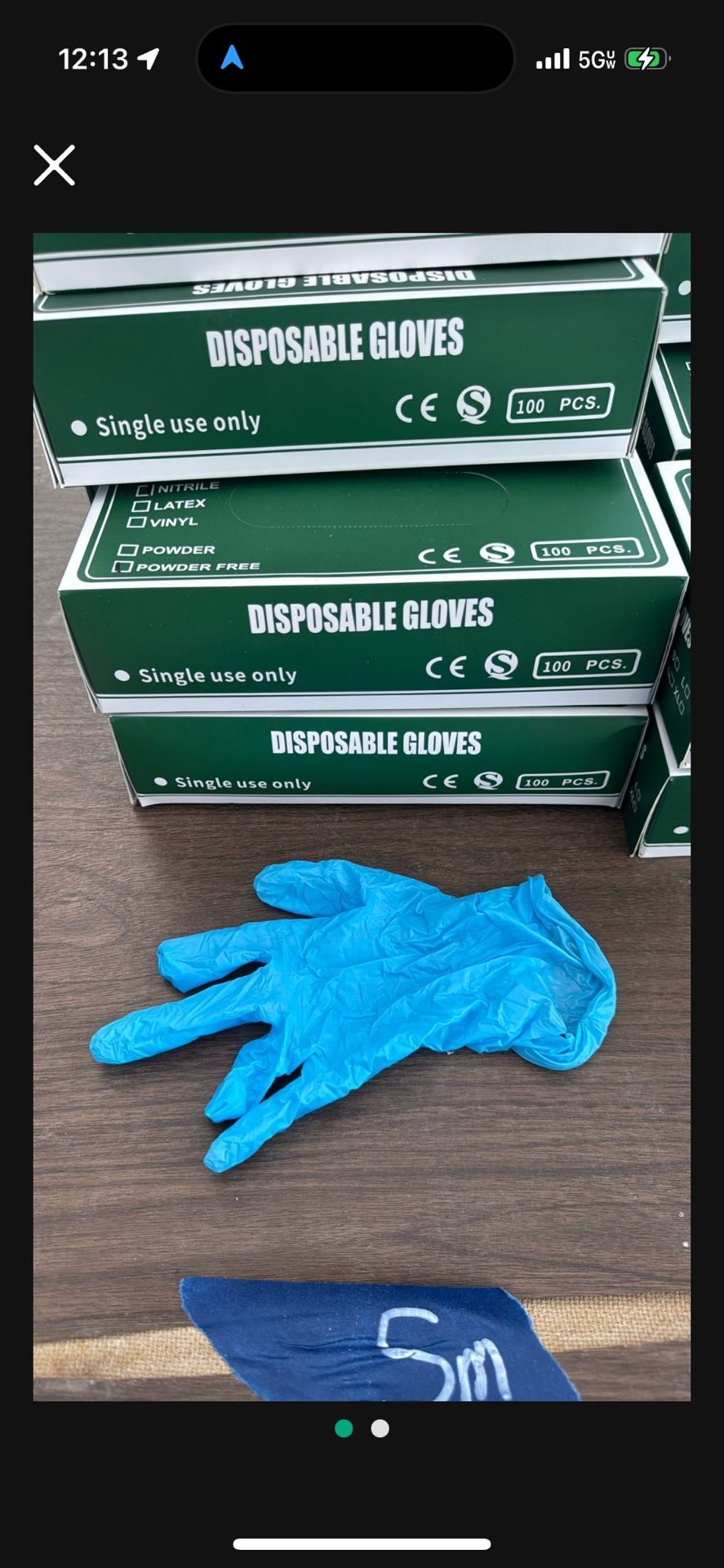 Powder free 5 mil gloves Small , medium , large and extra large $5 per box. $20 for 5 boxes $30 for case of 10 box no mixing of case