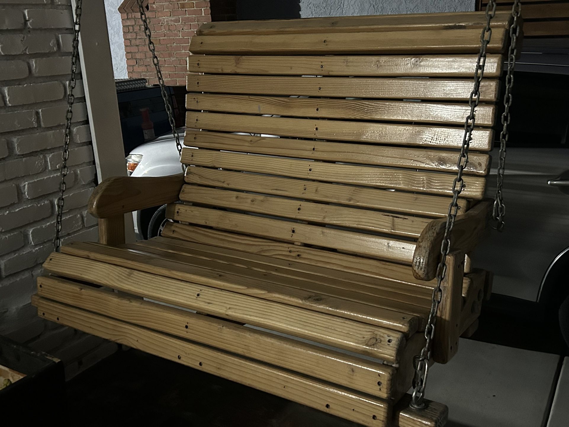 solid wood heavy duty , contoured , custom built, 2-seater. very comfortable!