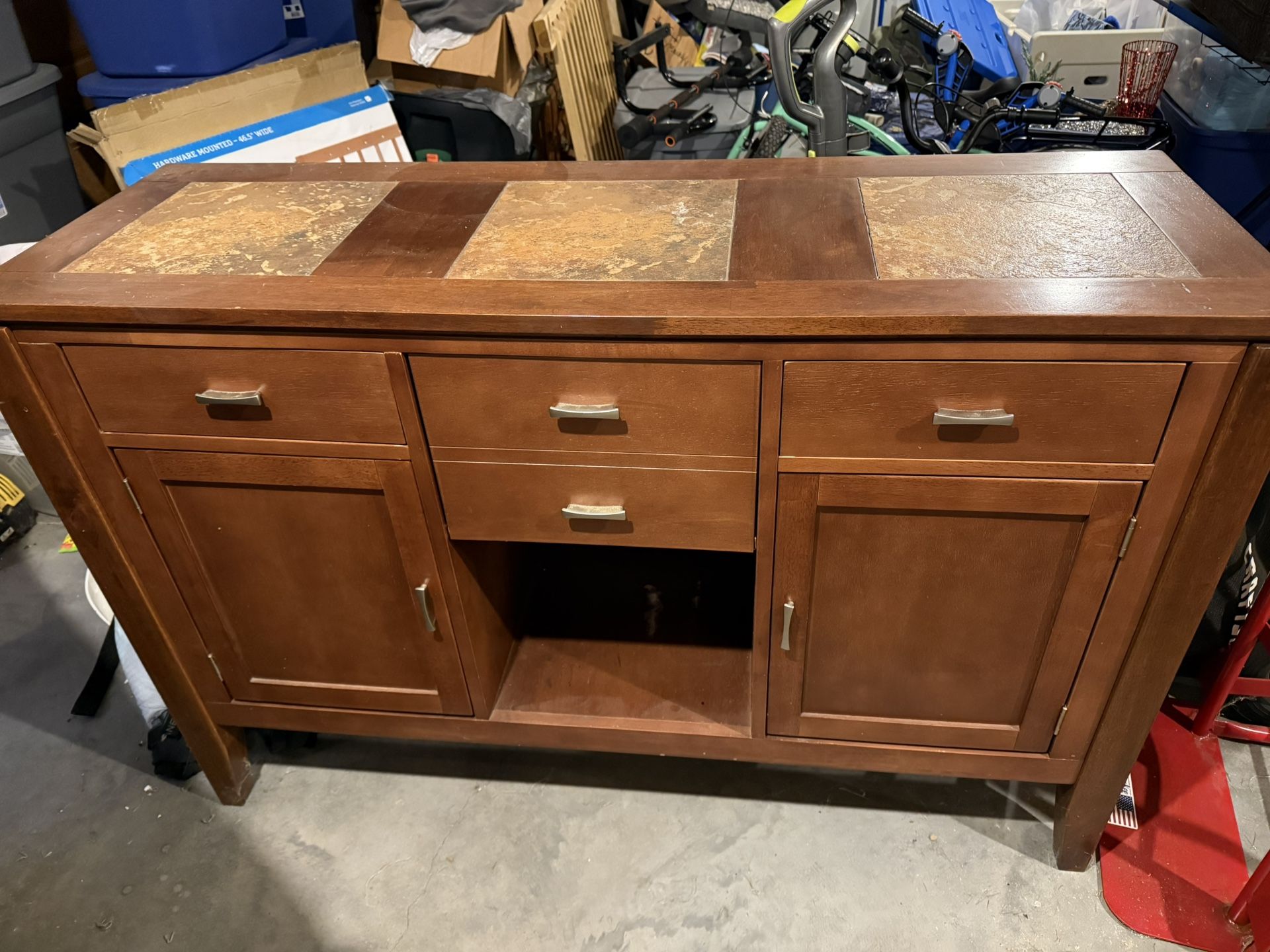 Nice buffet table. Has spot for wine glasses. No major damage. Smoke free home