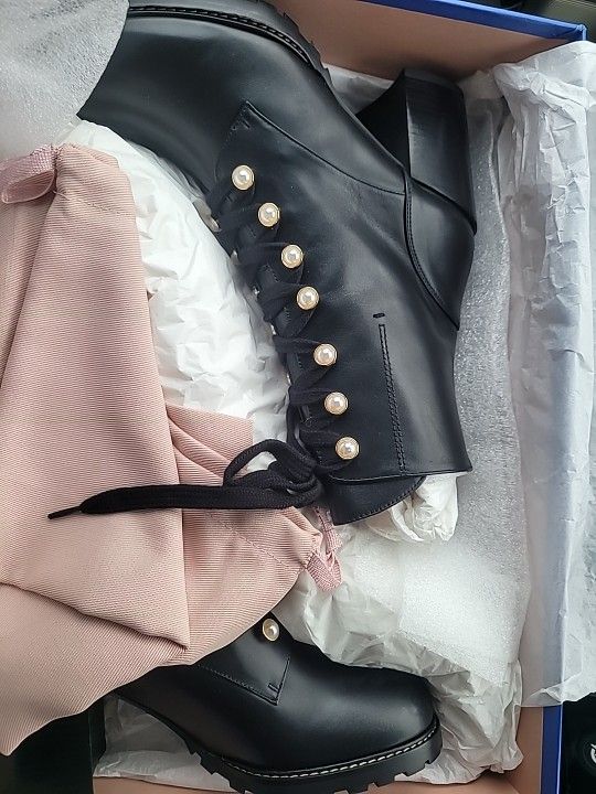 Stuart Weitzman Ivey Pearl Lace-Up Heeled Granny Boots Size 38.5