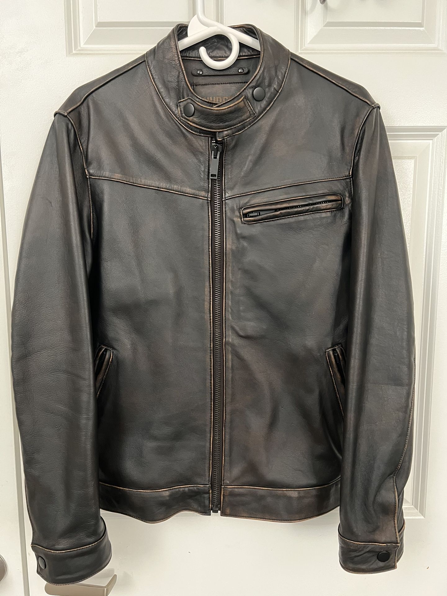 Thursday Boot Roadster Mens leather Jacket Color: Black Coffee Size: Slim Small