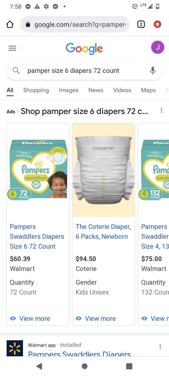 Size 6 Pampers 72ct.