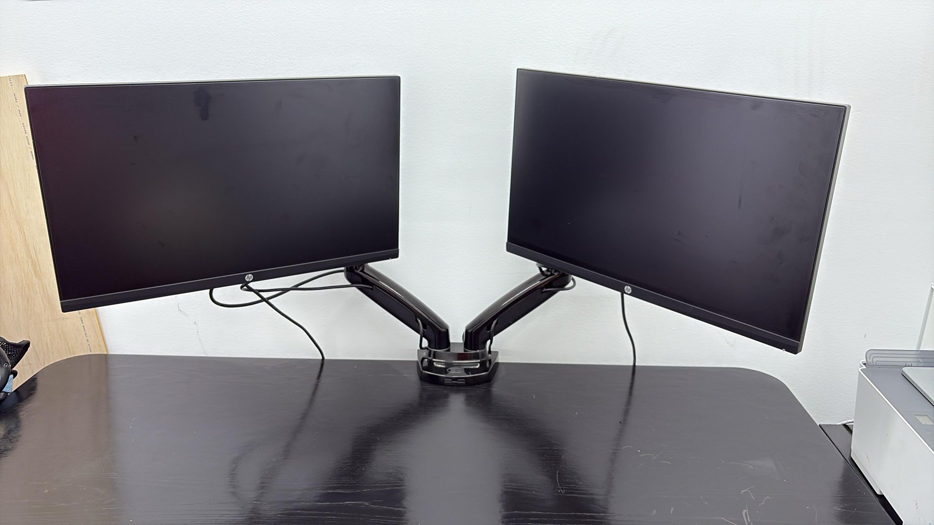 Full Professional Setup – Great for WFH or Gaming! I’m selling my entire desk setup as a bundle. Perfect for students, developers, or anyone needing a multi-monitor productivity station. What’s included: Black Minimalist Desk: Sturdy, clean black finish. Plenty of surface area for all three monitors and your laptop/keyboard. 2x HP 24-inch Monitors: Excellent condition, slim bezels. Includes original stands and power cables. 1x Dual Monitor Articulating Arm Mount: High-quality desk clamp mount. It clears up desk space and allows for full tilt/swivel/rotation. 1x Acer 24-inch Monitor: Stylish design with silver/gold base. (Note: Does not 2include power cable, but uses a standard generic one). Cables: Power cables for the two HP monitors are included. Condition: All items are in great shape. Monitors are clean with no scratches or dead pixels. Desk is stable and well-maintained. Price: $220 for EVERYTHING (Bundle deal!) If you have a truck and can pick it up today, I’m open to reasonable offers. Location: Renton, WA (Pick up only).