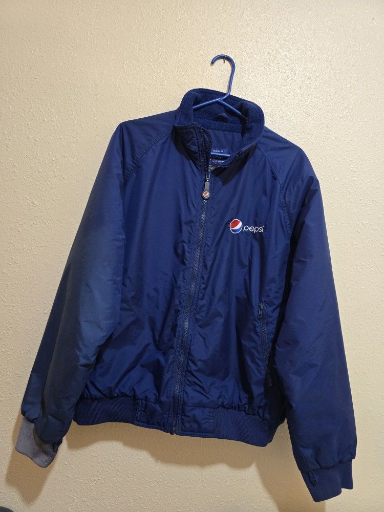 Pepsi Jacket Aramark Blue Full Zip Fleece Lined Logo Workwear Men's Size Large. 2 Front Zipper Pockets. VINTAGE RARE HARD TO FIND. SEE PICTURES AS PART OF DESCRIPTION. WHAT YOU SEE IS WHAT YOU WILL RECEIVE. RIGHT SLEEVE BOTTOM HALF GRAYISH. SLEEVE SLIGHTLY LIGHTLY BLUE ON SIDE OF GRAVE. MEASUREMENTS ARMPIT TO ARMPIT APPROXIMATELY 25 INCHES. NECK TO HEM APPROXIMATELY 28 INCHES. PICKUP ONLY AT 4506 OCTAVIA ST CASH ONLY EXACT CHANGE.