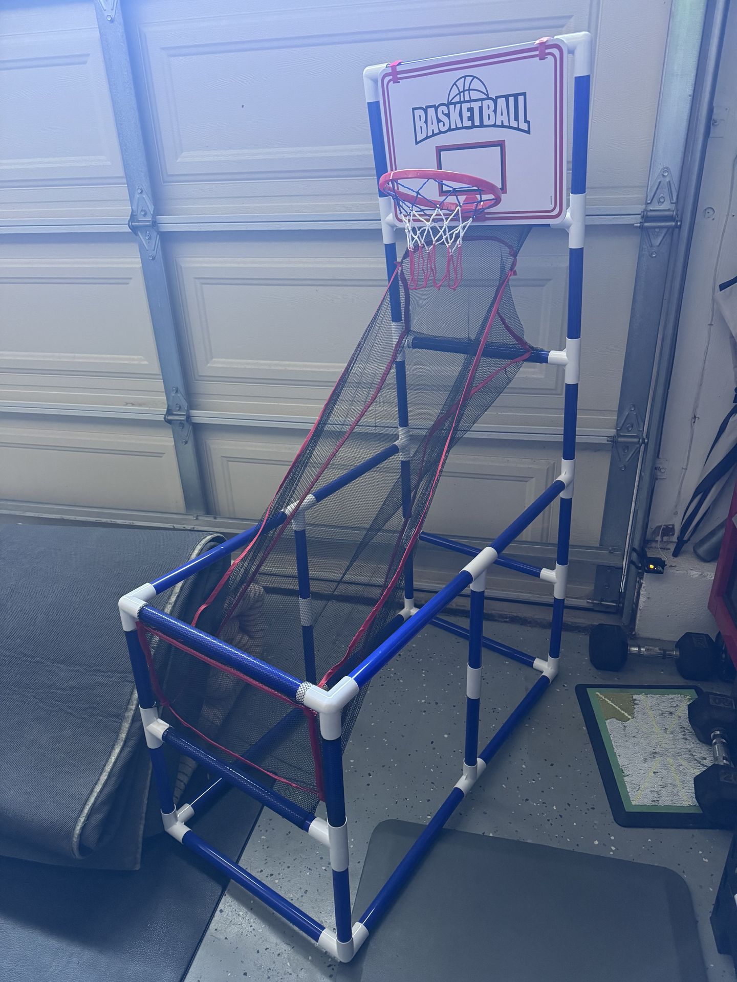 Small basketball hoop, made of PVC. Comes with a ball. Pick up for free in North Carlsbad