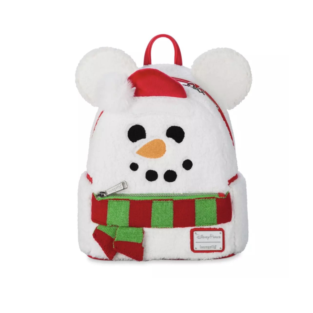 Mickey Mouse Snowman Holiday Loungefly Mini Backpack 2024 -Embroidered facial features -3D Mickey ears mi -Red velour Santa hat with white pom-pom accent -Zip main closure with double zip pull -Front exterior zip compartment with knitted red and green scarf detailing -Fully lined (Santa Mickey Silhouette print) -Disney Parks | Loungefly cloisonné label plate 10 1/2'' H (12'' including ears) x 9 1/2'' W (10 1/2'' including ears) x 5'' D You can also find this on M E R C A R I for safe shipping and more items (3 available)