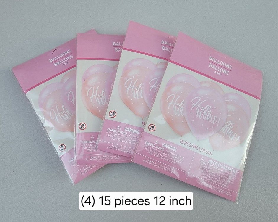 NEW Oh Baby! Hello World! 15 Piece 12" Balloons (4 available) Pink White Girl Baby Shower Gender Reveal Decor