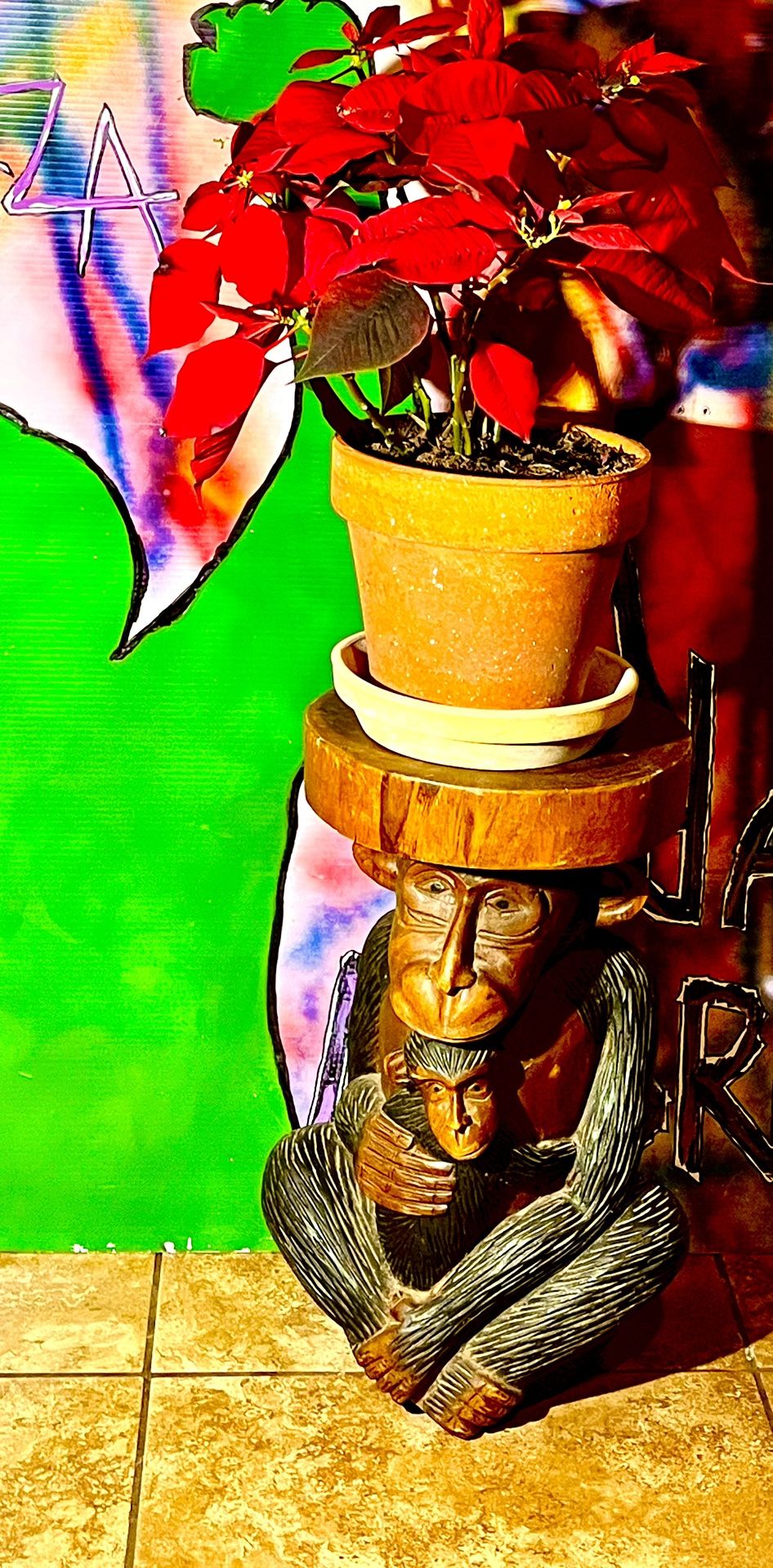 This is a rare Monkey plant stand or stool. Measurements are 28” ground to top and width is 11”. I put 30 lbs for shipping because if bubble wrap I will change weight at post office to exact. Please see l pics. Any ? Please ask. First picture has been enhanced with filter. Thanks Again