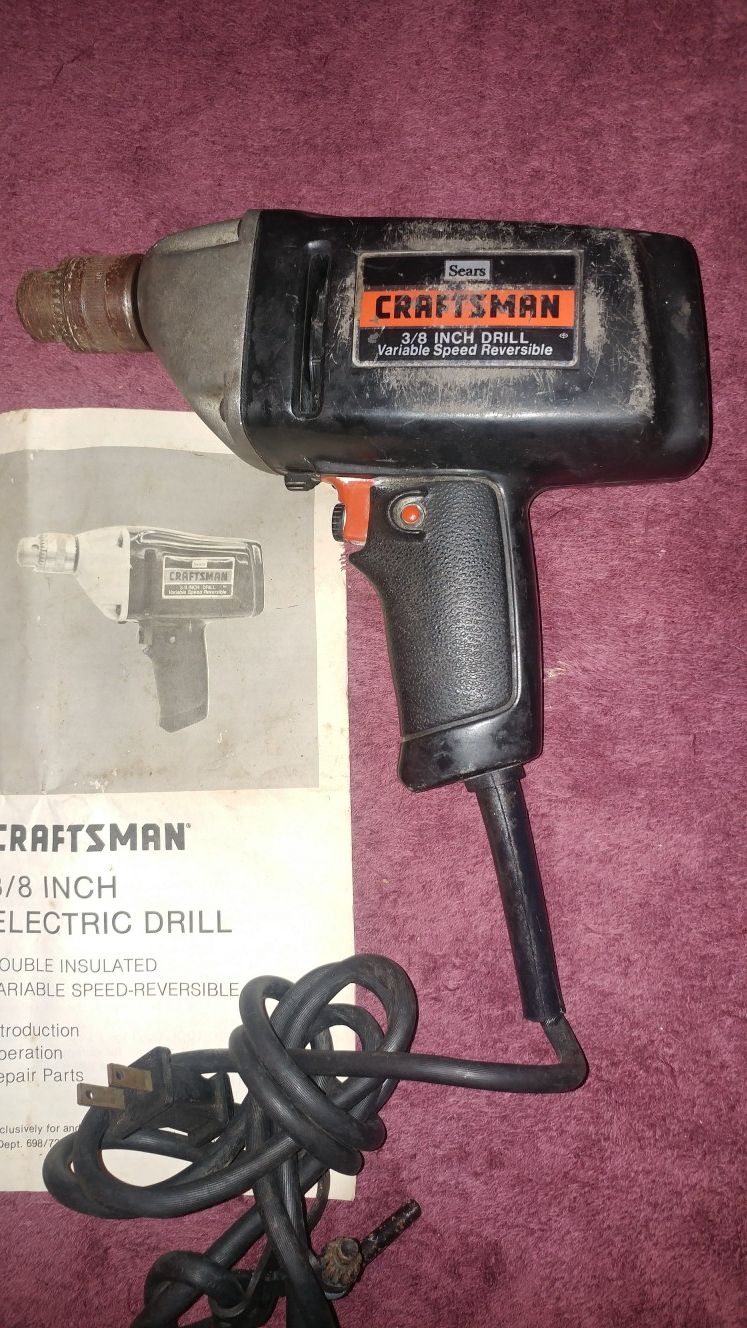Craftsman Reversible Drill 3/8" Bit Chuck Key included Very good condition Plz ✔ out my OU Site for other items