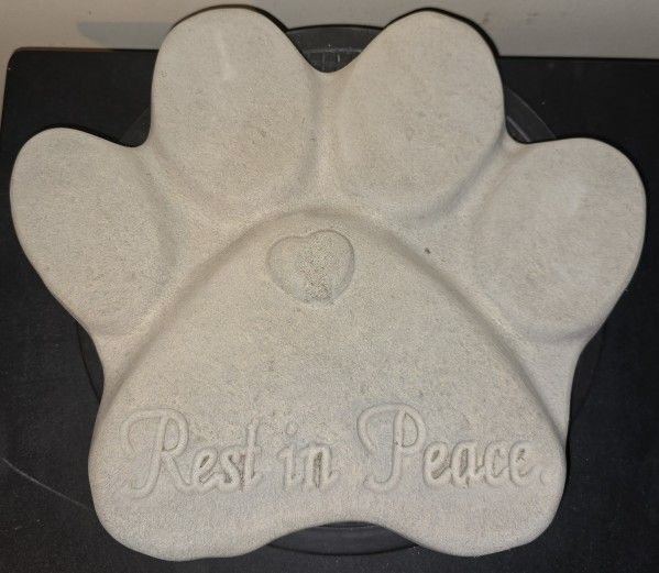 CONCRETE "Rest In Peace" Deceased Pet Remembrance Statue ($40) Approximate dimensions: 13 1/2 inches wide X 1 foot tall X 3 1/2 inches deep Local Pickup Only (Lenexa, KS) Thanks