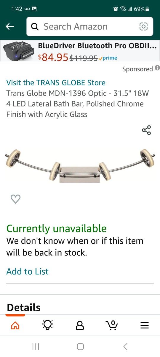 4LT BATH BAR-LED ACRYLIC RINGTrans Globe MDN-1396 Optic - 31.5" 18W 4 LED Lateral Bath Bar, Polished Chrome Finish with Acrylic Glass NEW Manufacturer Trans Globe Part Number MDN-1396 Item Weight 6 pounds Product Dimensions 32 x 7 x 7 inches Is Discontinued By Manufacturer No Assembled Height 7 inches Assembled Length 32 inches Assembled Width 7 inches Collection Optic Finish types Polished