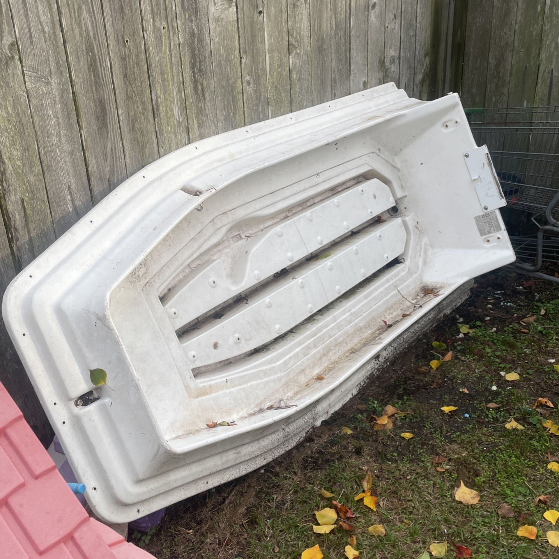 Dingy inside or something was given it is rated for up to a 25hp does float as is was gonna use to pond hop for bass with tolling motor make me an offer