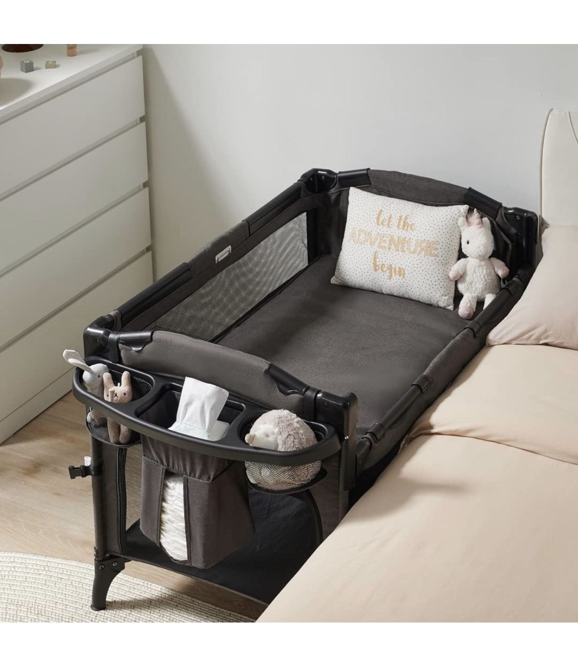 Baby 4 in 1 Bassinet Bedside Sleeper, Baby Bedside Crib 4 Functions, Bedside Bassinet Crib Sleeper, Playard, Changing Table, Baby Bassinet for Newborn