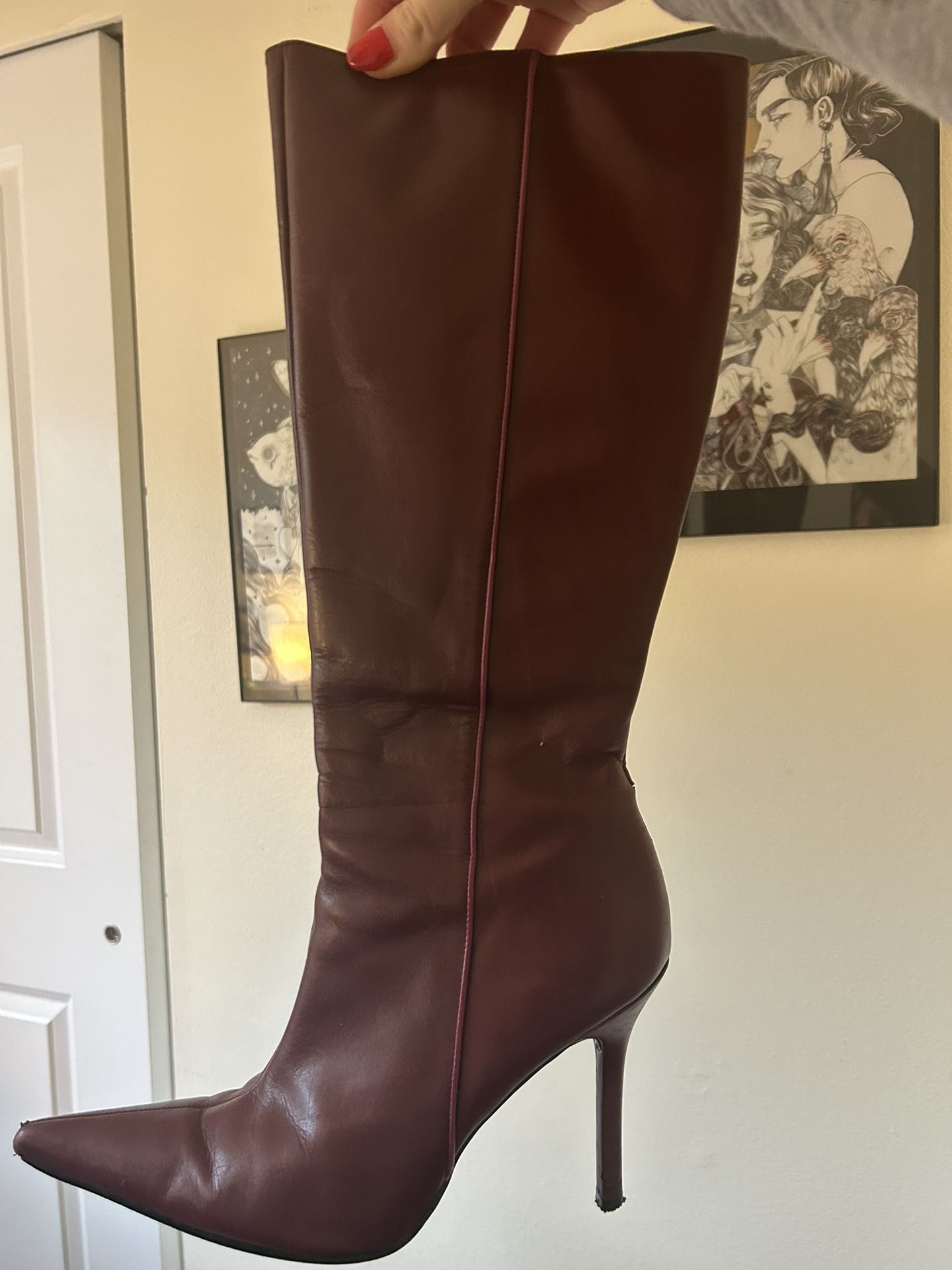 These have been worn a good amount and there’s a slight rip on the back of one boot. Love these boots but I have a bad ankle now and can’t wear heels — these just need a little repair but is t worth it for me to fix it.