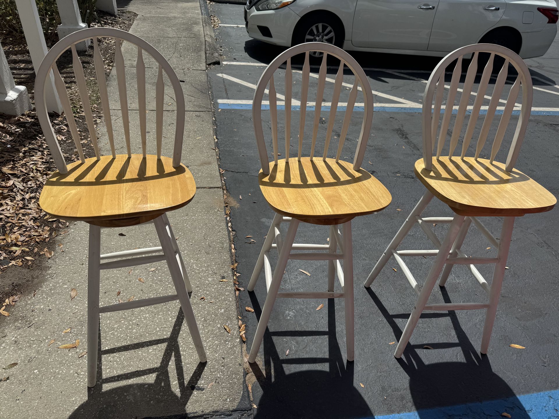 3 high white chairs