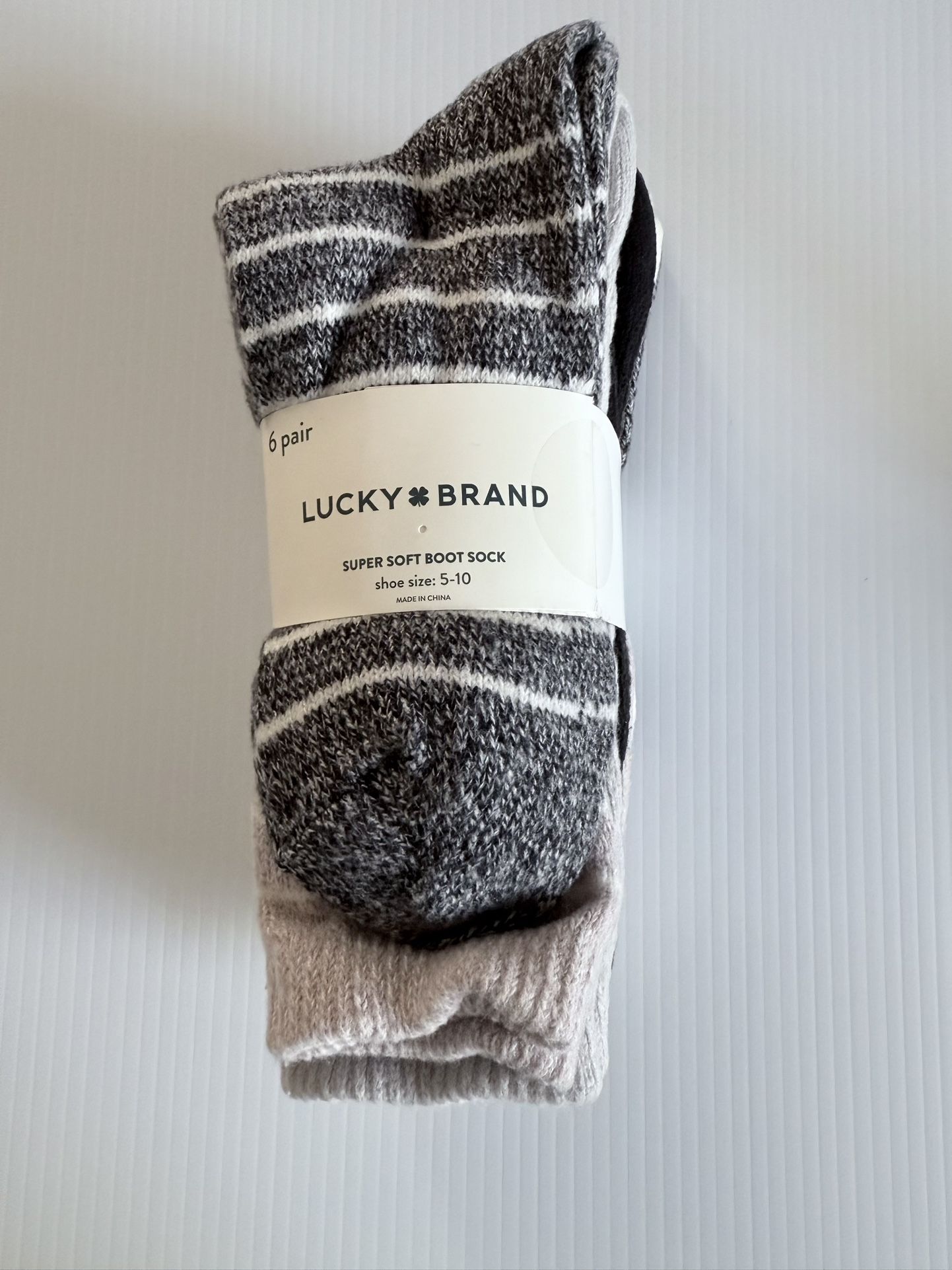 Lucky Brand Women’s Super Soft Boot Socks | 6 Pairs | Size 5-10 | Cozy Crew Length | Holiday Gift Stay cozy and stylish all season long with this 6-pair pack of Lucky Brand Women’s Super Soft Boot Socks. Crafted from ultra-soft marled yarn, these crew-length socks are perfect for chilly fall and winter days. Whether you’re lounging at home or layering up for outdoor adventures, these socks provide ultimate comfort and warmth. Key Features: • Super Soft Yarn: Plush and cozy for all-day comfort • Crew Length: Ideal for wearing with boots or lounging at home • Soft Stretch Rib Cuff: Secure and comfortable fit without slipping • Stylish Marled Yarn Design: Perfect blend of comfort and fashion • Versatile Use: Great for daily wear, lounging, or layering in cold weather Material: • 98% Polyester • 1% Spandex • 1% Rubber Product Details: • Brand: Lucky Brand • Quantity: 6 Pairs • Size: Women’s Shoe Size 5-10 • Care Instructions: Machine wash cold for easy care • Condition: Brand New Perfect For: • Fall and Winter Essentials • Holiday Stocking Stuffers • Everyday Comfort and Warmth Add these cozy and stylish Lucky Brand Super Soft Boot Socks to your collection or gift them to someone special this holiday season!