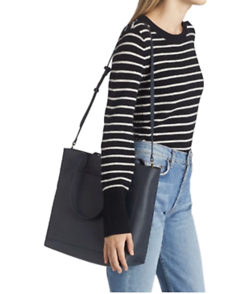 MADEWELL The Zip-Top Medium Transport Leather Tote NEW Black leather; 11"W x 12"H x 6"D. (Interior capacity: medium.) 8 ½" strap drop; 14" - 19 ½" shoulder strap drop. 1.6 lb. Two ways to carry: with the top handles or the detachable shoulder strap. One exterior pocket for those things you have to grab fast. One interior side zip pocket to keep your keys, phone and wallet at the ready. Top zip closure Top carry handles; removable, adjustable shoulder strap Exterior zip pocket Interior zip pocket Leather Imported All sales are final Smoke&pets free house Thx