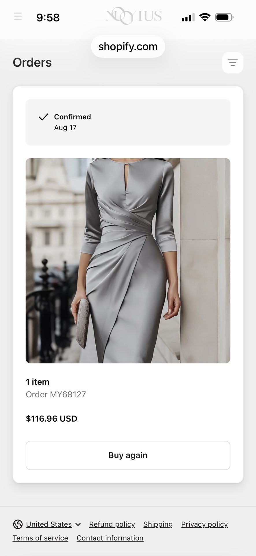 Mooyius presents the Silver Satin Midi Dress—a luxurious expression of modern femininity. This striking piece is crafted from high-shine satin in a rich, regal silver tone that instantly elevates any wardrobe. The style silhouette is tailored to perfection, that accentuates the feminine figure. The keyhole and long 3/4 sleeves bring balance and elegance to the design. Material: Made of durable, premium satin Design: Color Fit: comfortable, suitable for all body shapes and sizes Care Instructions: Wash in cold water, air dry, iron at low temperature when necessary Model Information(M):Height:168/66.1, Bust:93.3/36.9, Waist:73.6/28.9, Hip:100.3/39.4 What makes this dress truly stand out is its soft glow under city lights. Whether worn for a cocktail evening, a gallery opening, or a stylish work dinner, it captures attention with quiet confidence. The midi length keeps the look sophisticated, while the pleating around the mid-area creates gentle movement and a sculpted profile. Still in original packaging.