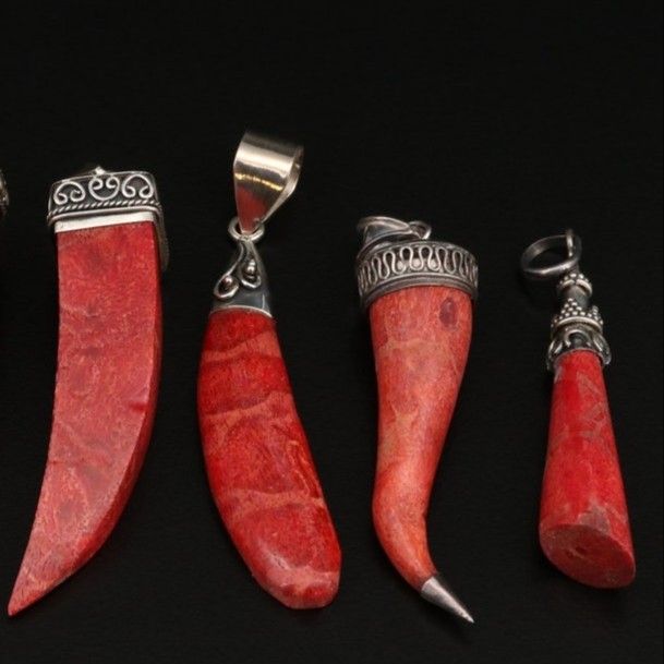 Antique Sterling Silver Pendents With Natural Red Corral.