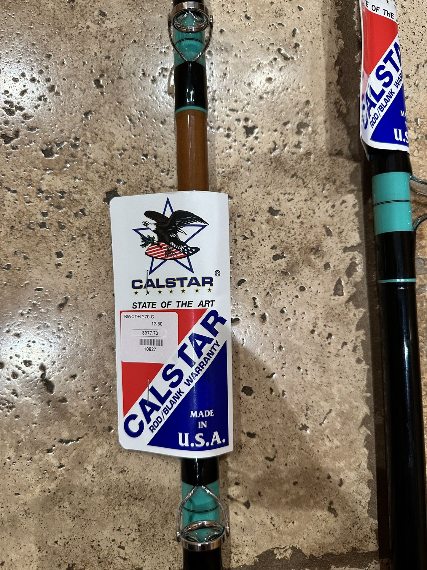 NEW Calstar 6480 (black blank) 8 ft, ready to fish. Still has tags on it $275 each NEW Calstar 270 (tan blank) 8 ft, ready to fish. Still has tags on it. $275 each Fishing Fishing rod Blank Jig Stick
