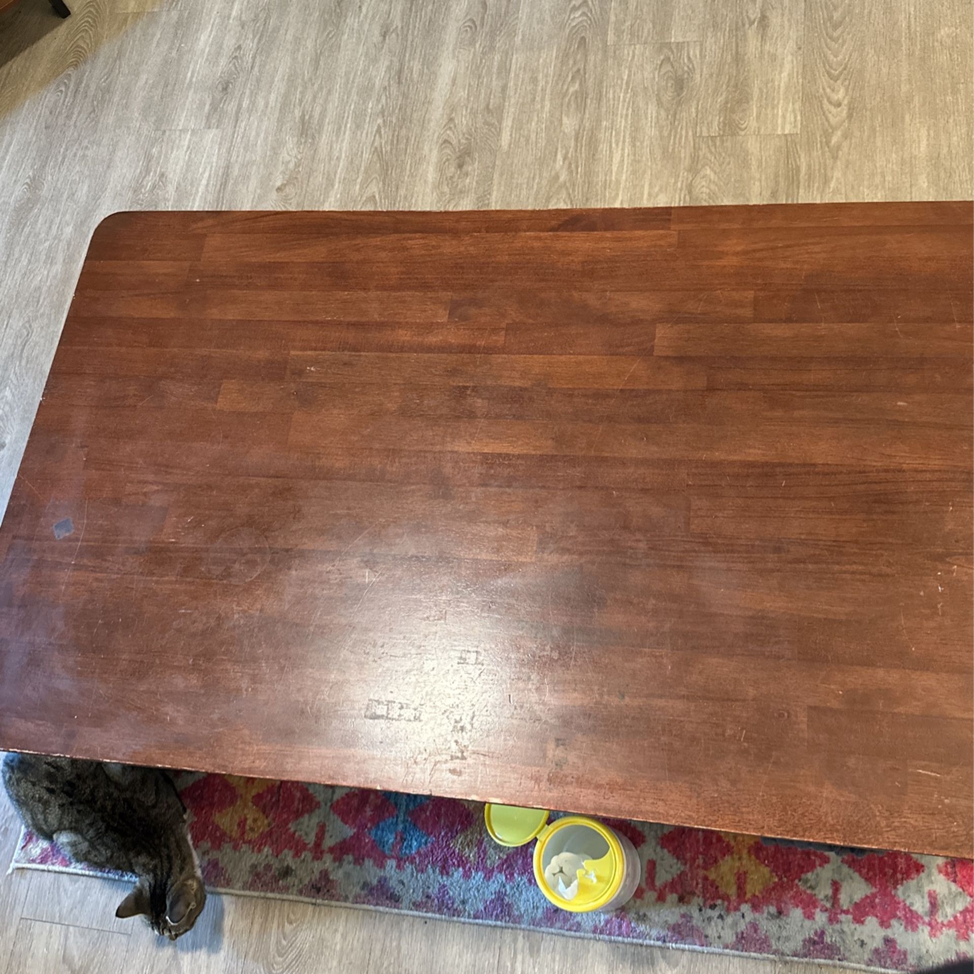 Brown coffee table with drawers. Used and scuffed up, just trying to get rid of it. Must be able to pick it up.