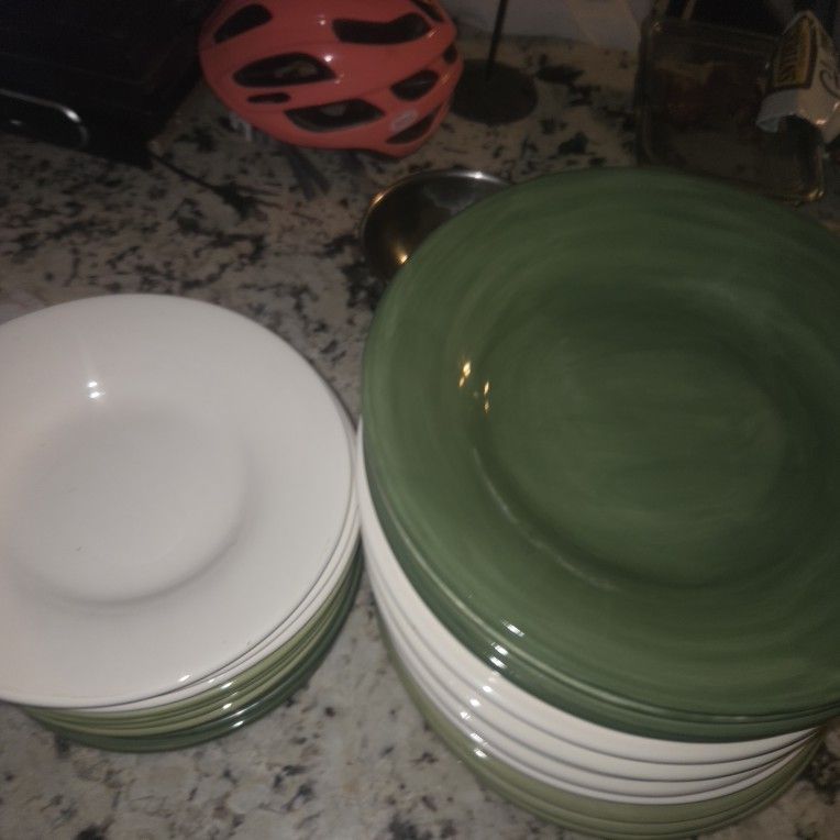 Pottery Barn plates Sausalito 28 16 Dinner Plates 12" Salad Plates 12 10" discontinued green white Make An Offer $10 Each