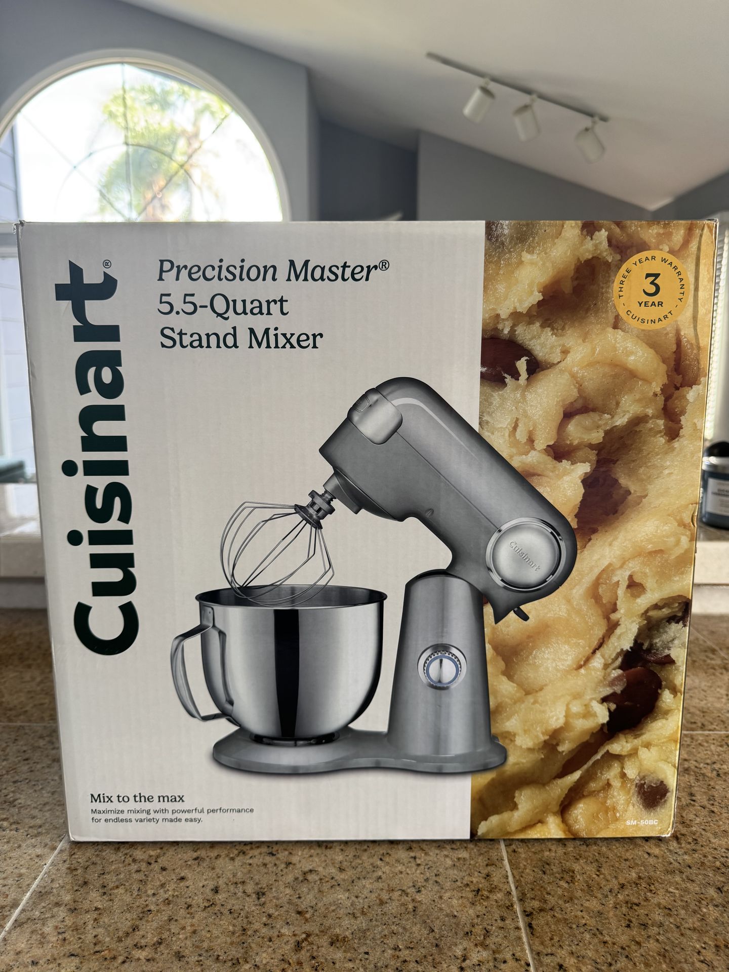 Brand new Cuisinart Precision Master 5.5-Quart Stand Mixer — never used, still in original box. Perfect for baking, cooking, and meal prep. Large 5.5 qt capacity handles everything from cookies to bread dough. Includes: • Stainless steel mixing bowl • Dough hook • Flat mixing paddle • Chef’s whisk • Splash guard Features: • 12-speed control (from gentle fold to high whip) • Powerful motor for heavy doughs • Great for baking, meal prep, or anyone upgrading their kitchen Got as a gift and don’t need it — my loss, your upgrade. Pickup in Costa Mesa/Newport Heights. Cash/Zelle/Venmo OK.