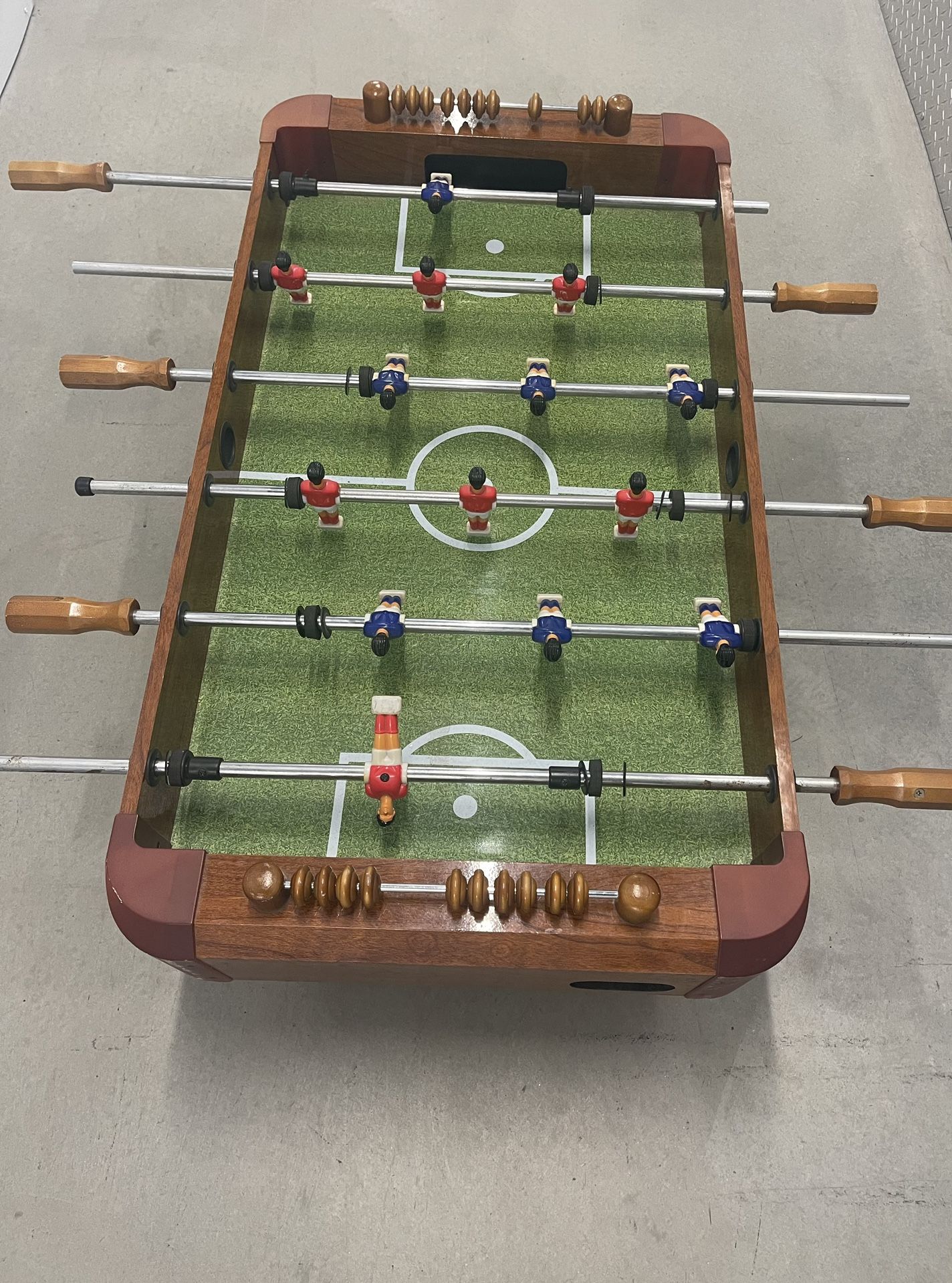Want to sell both don’t use them as much as we used to, they do work. No issues with them Foosball table is ~20inch wide ~36inch long ~14inch tall The foosball has mini legs on the bottom it does adjusts to make it leveled Air hockey is ~40.5inch long and ~19.5inch wide The air hockey does not have legs Game tables