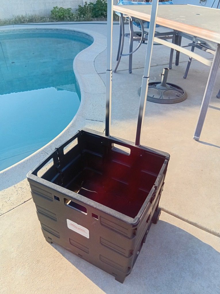 Heavy-duty collapsible utility cart with telescoping handle - ideal for transporting files, folders, and supplies with ease! Features: • Durable black plastic construction with reinforced design • Smooth-rolling wheels for effortless mobility • Telescoping/retractable handle adjusts to your height • Folds flat for compact storage when not in use • Spacious interior holds boxes, files, and supplies • Built-in lid secures contents during transport • Perfect for teachers, office workers, or mobile professionals Condition: Gently used, fully functional Great for hauling documents between meetings, classrooms, or job sites. No more heavy lifting! 💼 Makes organizing and transporting your work materials a breeze!