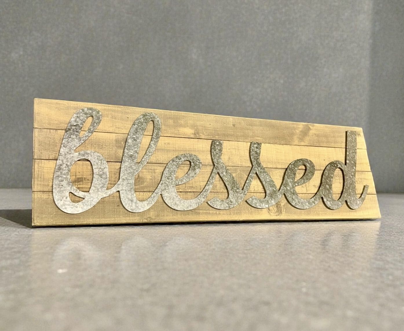 33" Large Rustic Farmhouse "Blessed" Metal & Wood Wall Sign
