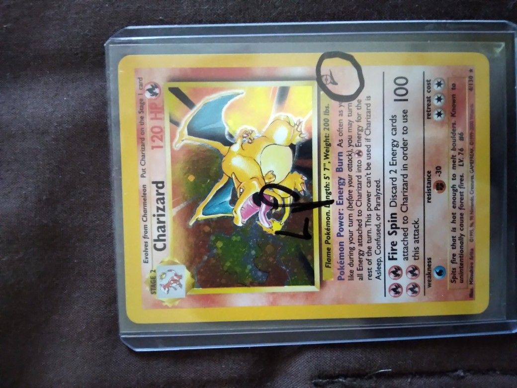 Great condition charizard the shop I bought it from drew on the plastic case nothing wrong with the card
